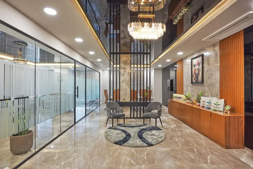 Flipspaces, a trailblazer in tech-first commercial interiors, has reshaped over 5 million sq ft of workspace globally, including office reception interior design that blends style, function, and brand narrative. Their recent project for Bharat Financial Inclusion Limited in Hyderabad speaks volumes: a rural-themed mural wall at the office reception wall design, transitioning into biophilic textures and vibrant accents, making it a vivid, welcoming space.