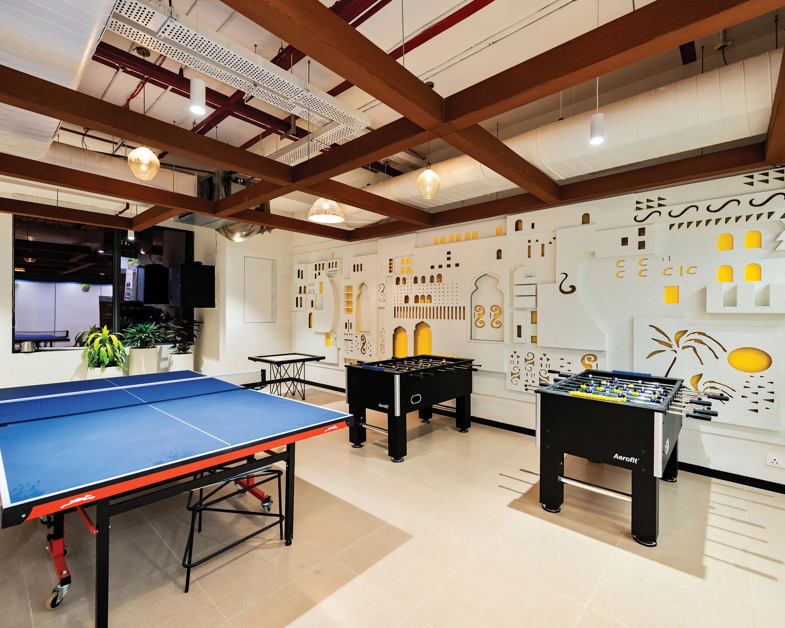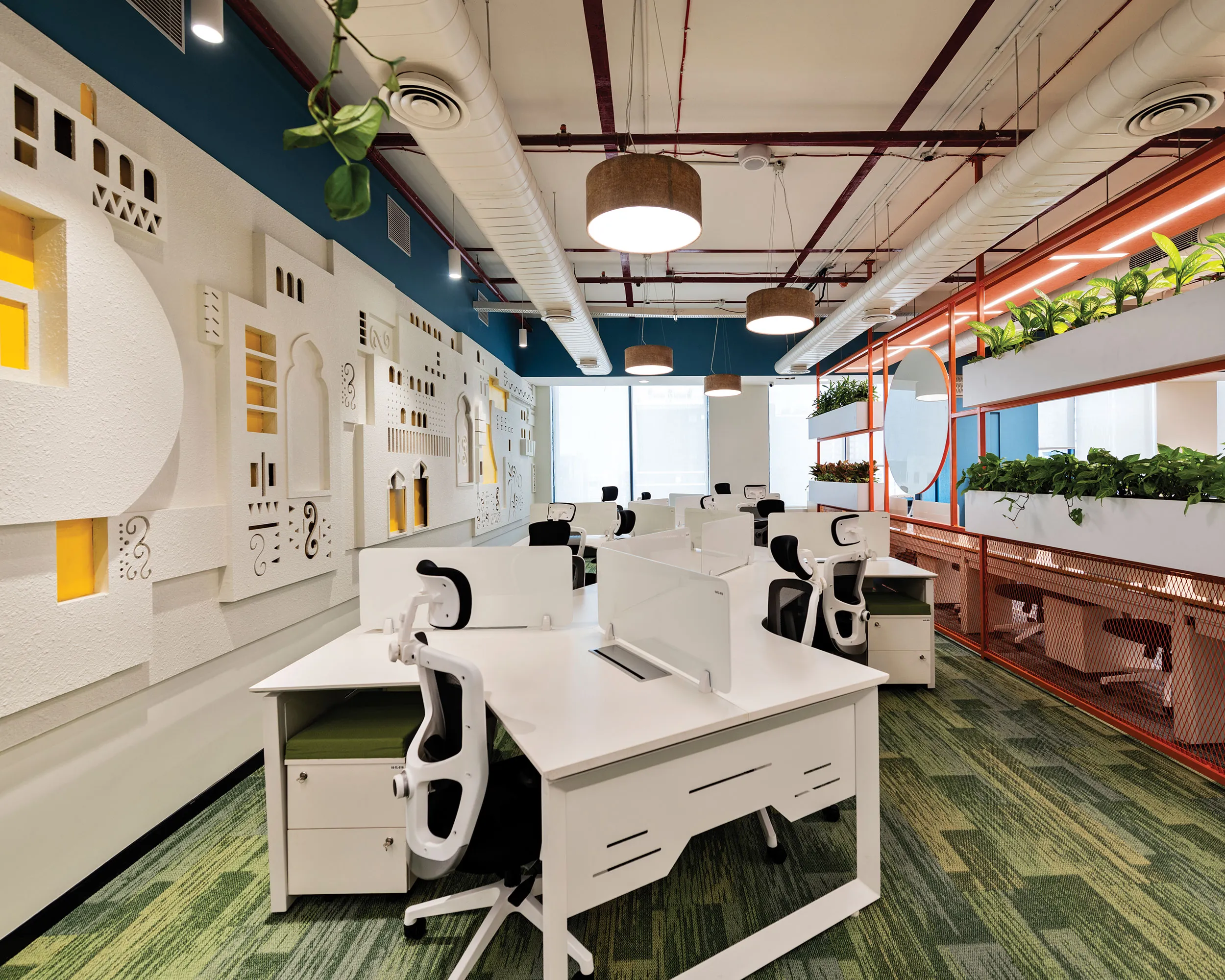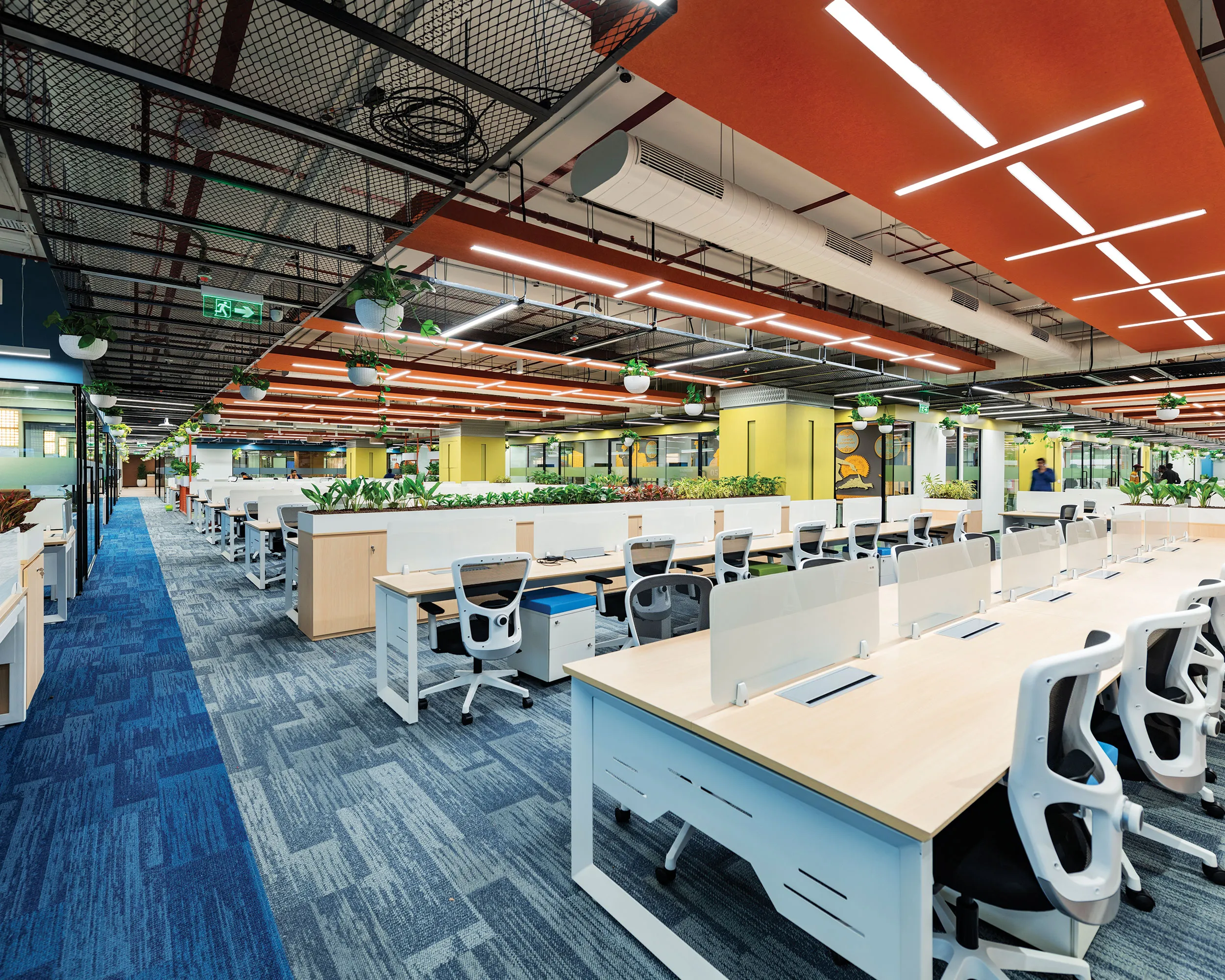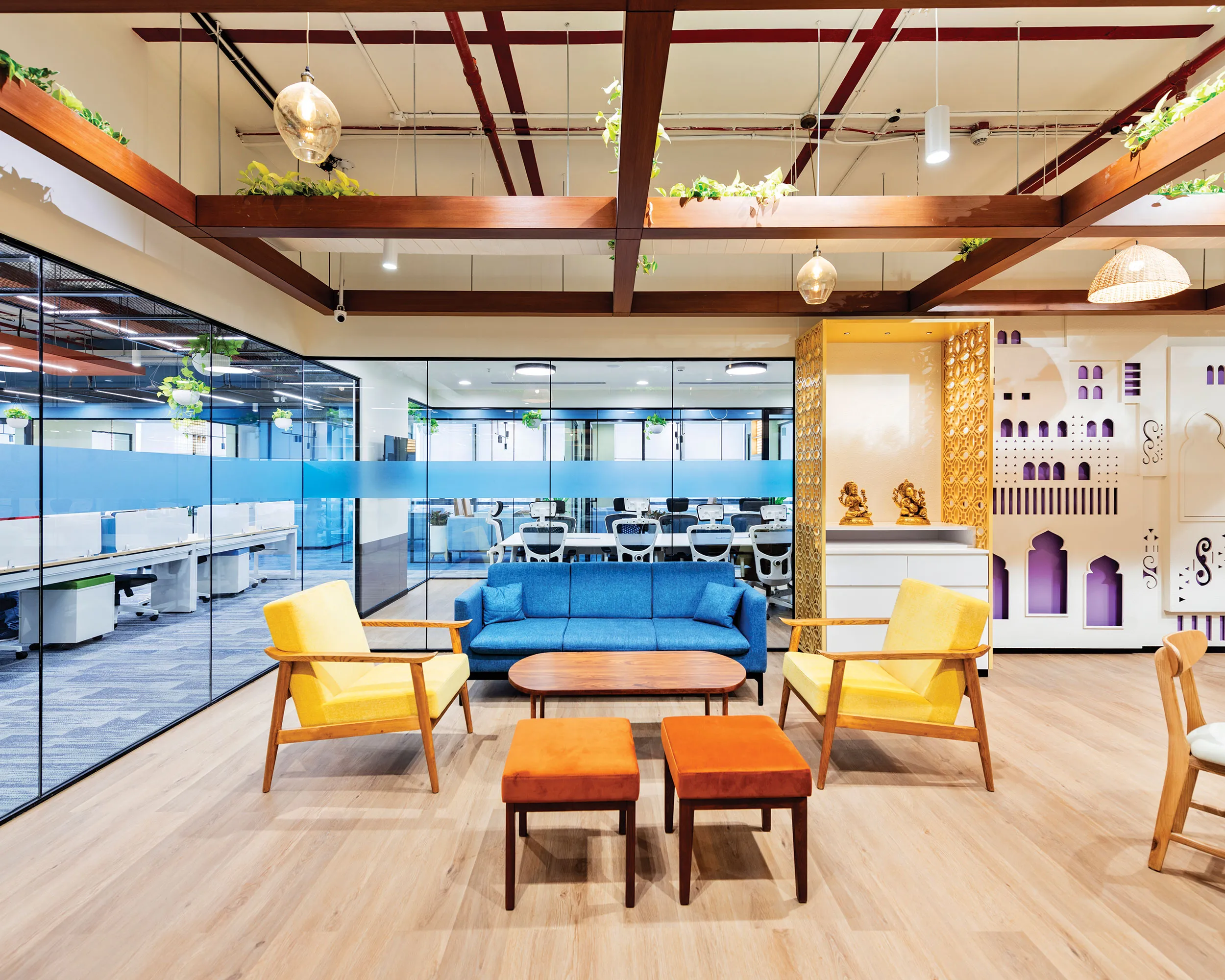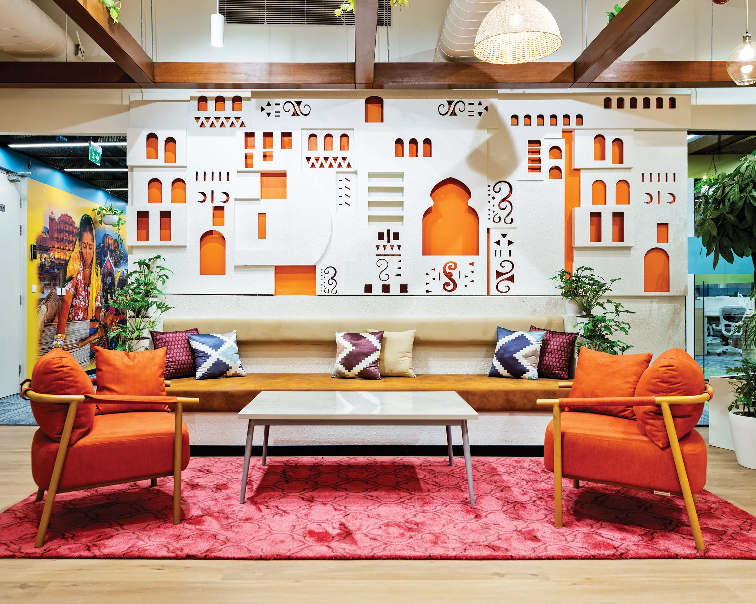 Key design elements, including customised furniture, designer lighting, stucco finishes, 3D CNC panelling, acoustic ceilings, and coloured grid ceiling tiles, were brought to life to reflect the Modern Rural Biophilia theme. Proprietary technology ‘Vizworld’ enabled timely design, leading to minimised iterations, ensuring speed without compromising quality. Real-time remote project monitoring provided transparent progress tracking, supported by daily on-site meetings with the design and operations team.