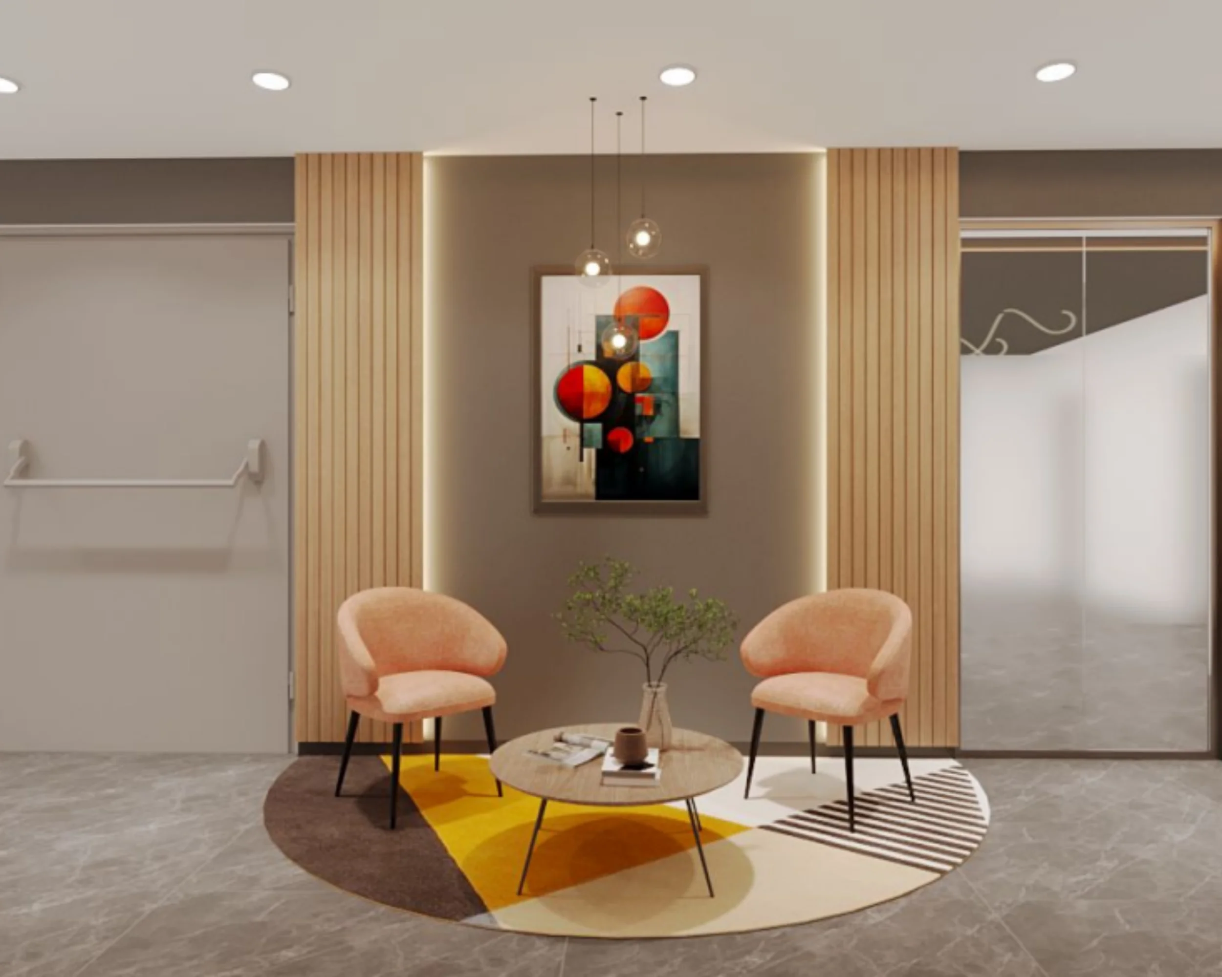The client needed a high-efficiency BPO workspace within 35,000 sq. ft., accommodating 250+ seats while integrating essential functions such as training rooms, meeting spaces, cafeteria, medical and wellness rooms, and leadership cabins. The goal was to move beyond a purely functional setup to create a more engaging and comfortable environment for employees.