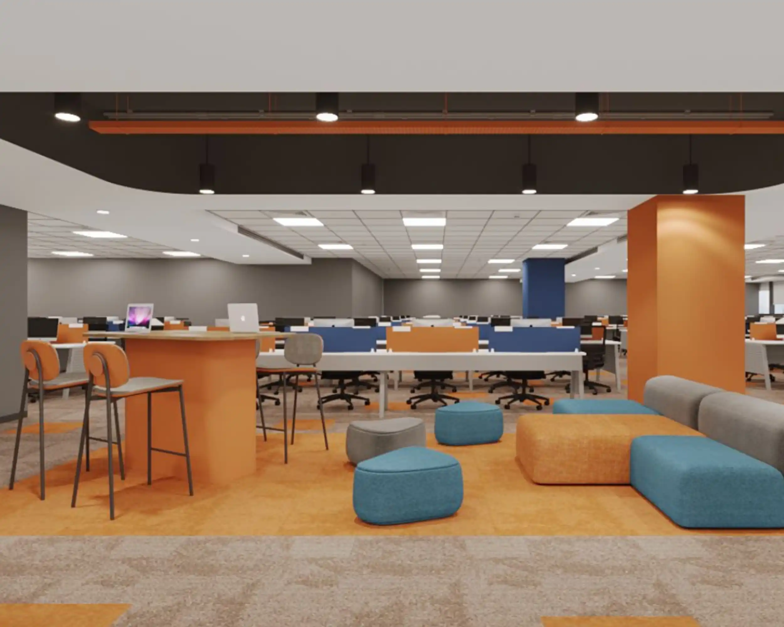 Transforming Functional Efficiency into an Engaging Workplace A conventional BPO workspace, reimagined bringing together operational efficiency with thoughtful design, bringing clarity, and a more human-centric design.