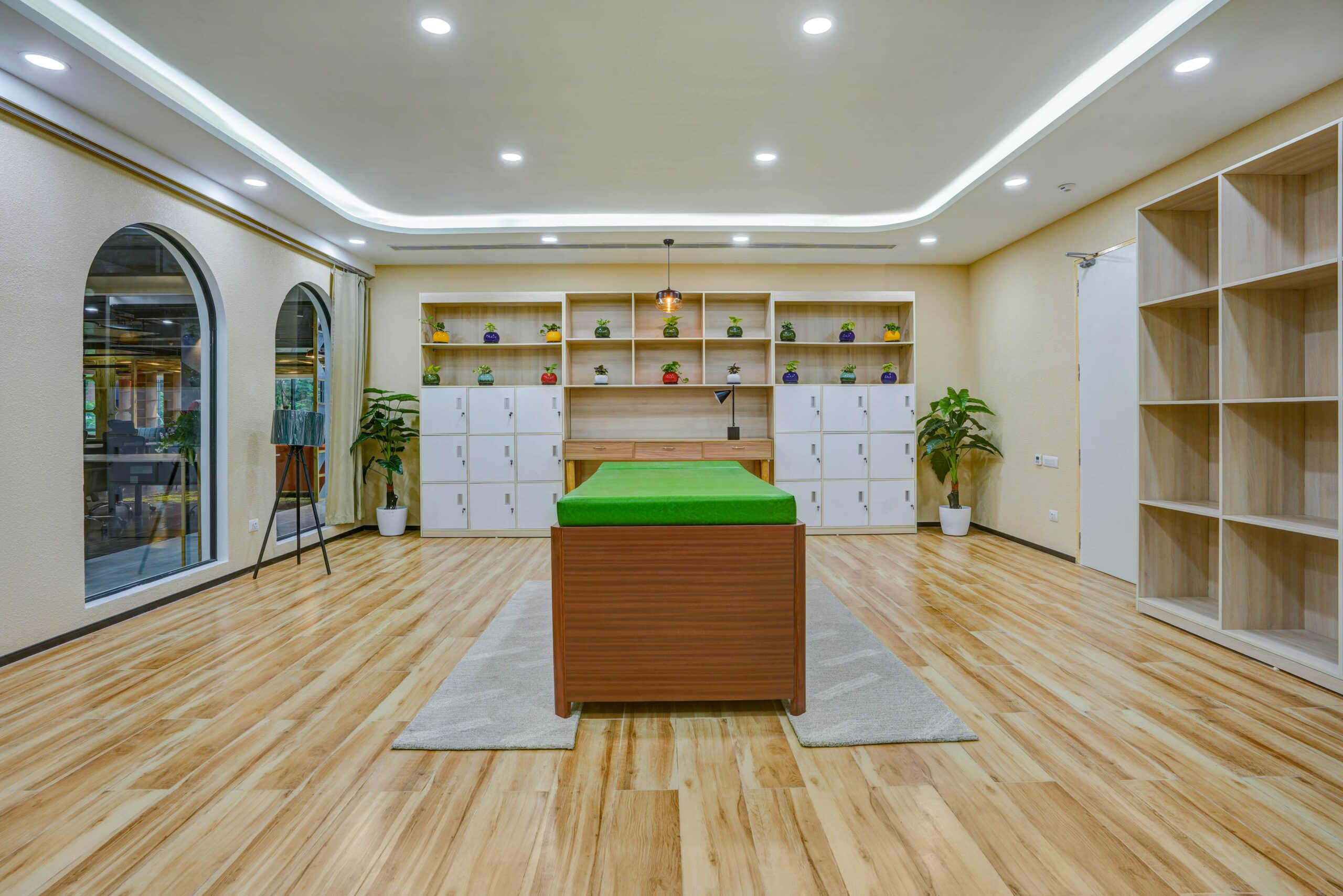 - Natural Light and Biophilic Elements: Maximize natural light by using large windows and sheer curtains. Introduce biophilic elements like indoor plants or natural wood accents to connect the workspace with nature and promote a sense of well-being.